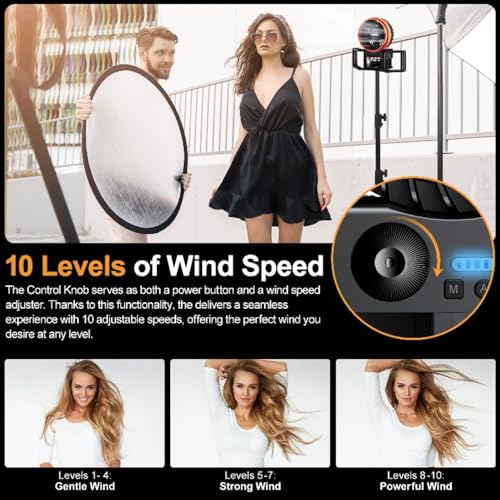 - 【زوايا محمولة وقابلة للتعديل】تسمح مروحة التصوير الاحترافية هذه بمرونة كاملة بفضل تصميمها المحمول، ويمكن تعديلها بسهولة على زوايا النفخ المختلفة لمحاكاة تأثيرات الرياح المختلفة. مثالية لإعدادات التصوير الفوتوغرافي في الهواء الطلق والاستوديو، فهي توفر للمصورين سرعة وتردد رياح قابلة للتخصيص، مما يجعلها مثالية لإنشاء مشاهد مختلفة.