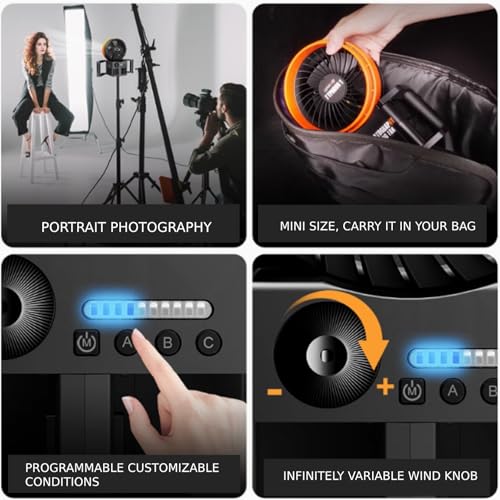 - 【محمولة مع جهاز تحكم عن بعد؛ واجهة برغي عالمية 1/4 انش】تزن 930 غرام فقط، هذه المروحة الصغيرة المحمولة سهلة الحمل في مكانها. يضمن جهاز التحكم عن بعد بالأشعة تحت الحمراء بطول 10 أمتار وقت استجابة منخفض وتحكم دقيق في الرياح لإعدادات ضبط سريعة؛ مزود بواجهة توسيع 1/4 انش، يتم توصيله بشكل مثالي بمعدات التصوير المختلفة، بما في ذلك الحوامل الثلاثية وحوامل الإضاءة.