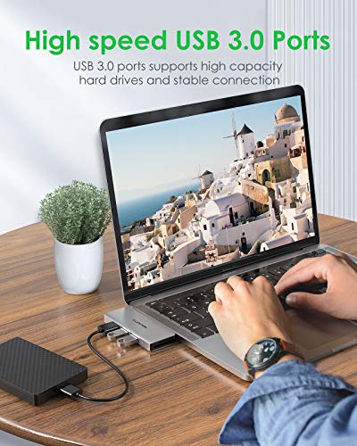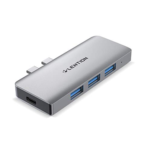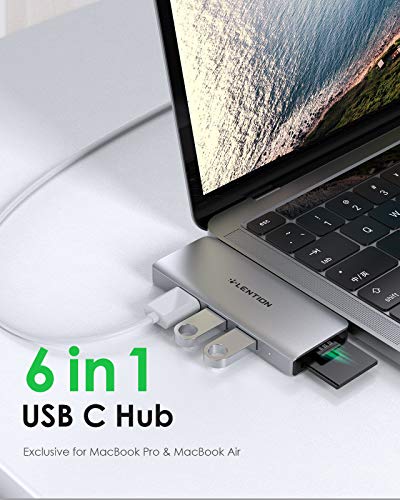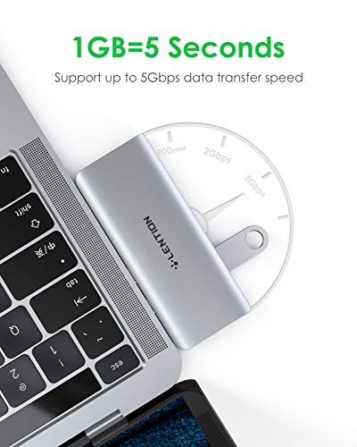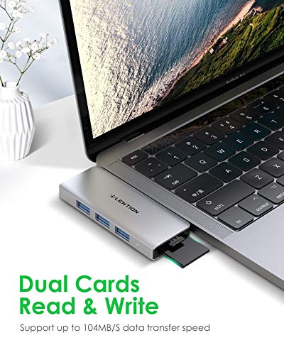 LENTION - موزع USB نوع C 6 في 1 مع منفذ USB نوع C من لينشن (توصيل طاقة 100 وات + نقل بيانات 40 جيجابايت في الثانية ) 3 منافذ USB 3.0 ومحول قارئ بطاقات مزدوج SD وشريحة Micro SD (CS62، فضي)