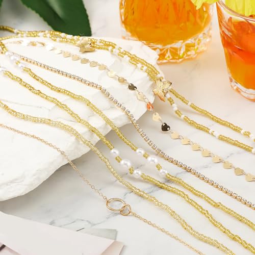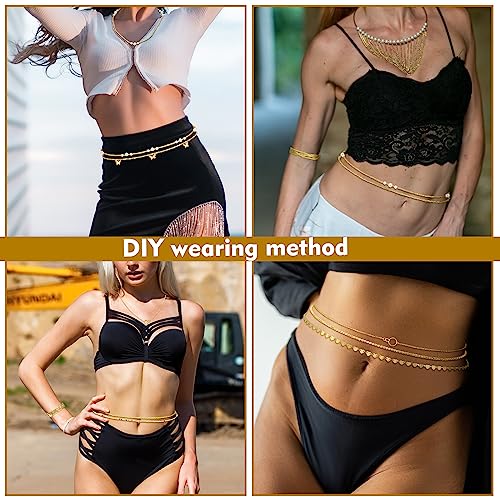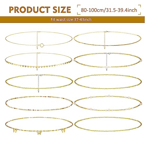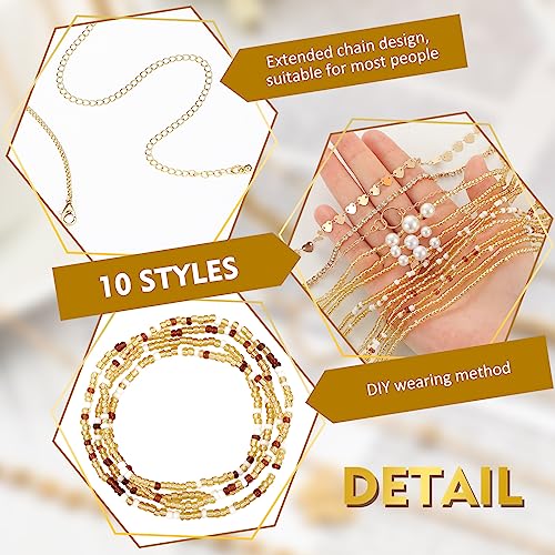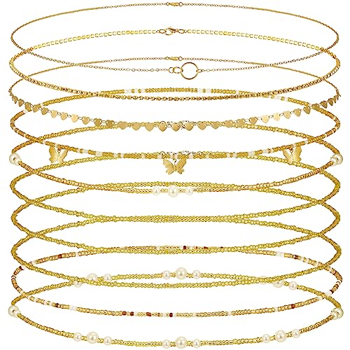 Lenwen - لينوين 10 قطع سلسلة بطن قابلة للتعديل سلسلة الخصر الصيف الشاطئ مجوهرات الخصر للنساء سلسلة الجسم متعددة الطبقات للجسم الفتيات، مقاس واحد، خليط معدني