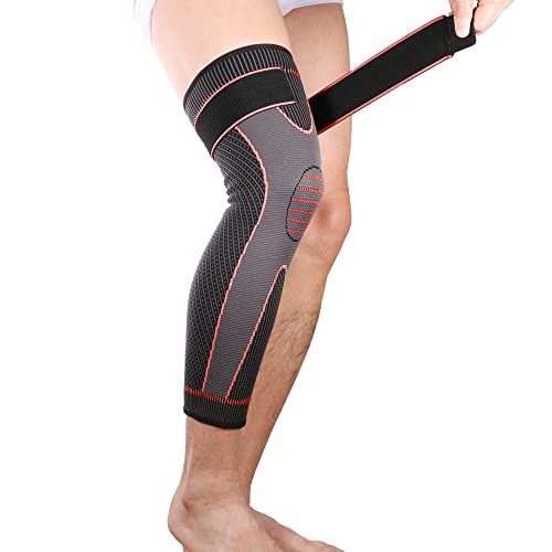 LEO.STAR - دعامة الركبة الكلاسيكية طويلة ومرنة، دعامة للساق، دعامة دعم الركبة للساق، واقيات الركبة الرياضية الدافئة من ليو ستار، قطعة واحدة