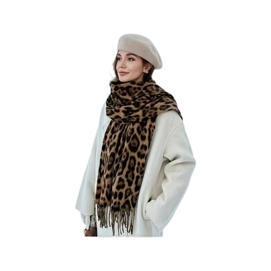 Generic - وشاح بطبعة جلد الفهد مع شراشيب، شال ملفوف ناعم ودافئ للشتاء، نمط حيوانات بني