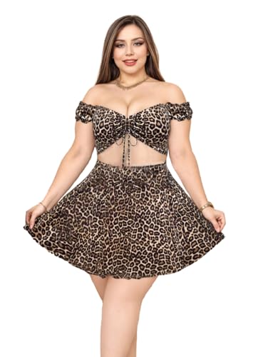 GAMAL SONS FOR ABAYA - طقم نسائي بطبعة جلد النمر – توب قصير بأكمام منفوخة، تنورة قصيرة واسعة GAMAL SONS FOR ABAYA GS-124-51057-Parent
