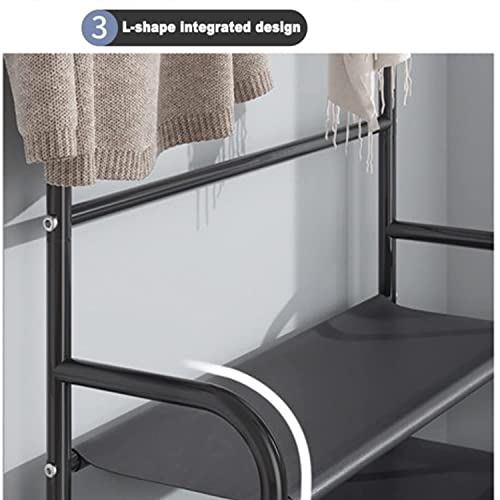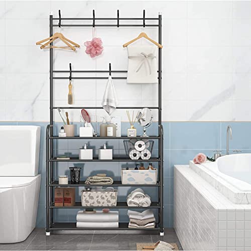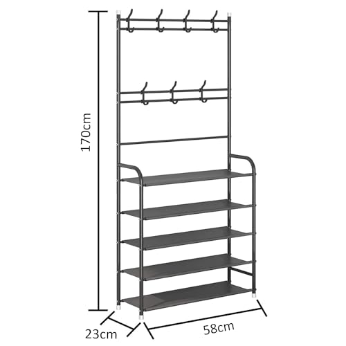LEOPAX - رف معاطف مع وحدة لتخزين الأحذية، حامل ملابس متعدد الوظائف، مزود بمنظم رف أحذية من 5 أرفف و8 خطافات، لغرفة النوم والمدخل من ليوباكس، أسود معدني، الأبعاد: 58 سم × 23 سم × 1.7 م