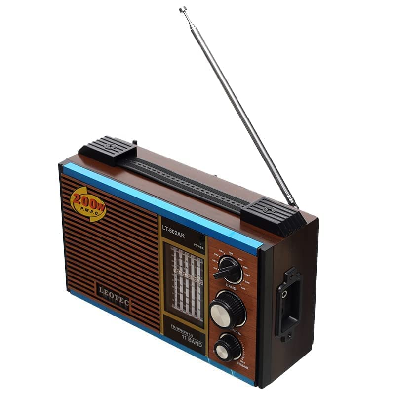 LEOTEC - راديو قابل للشحن مع سماعة رأس بتشغيل تيار متردد/تيار مستمر من ليوتيك LT-802AR - لون الخوخ