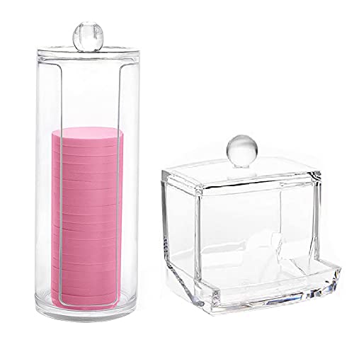 Lepidi - صندوق اعواد قطن شفاف من قطعتين مصنوع من البلاستيك مقاوم للغبار مع غطاء للمجوهرات واعواد القطن واحمر الشفاه (شفاف)