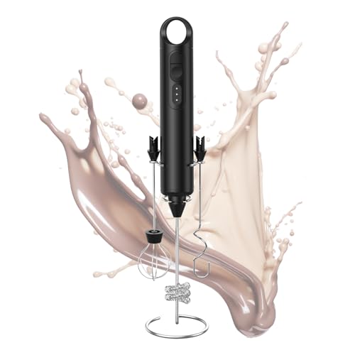 LePresso - ماكينة صنع الرغوة 3 في 1 من ليبريسو، 3 مستويات سرعة، شحن من النوع سي، ماكينة صنع رغوة سريعة، ماكينة مزج الخليط والصلصة، محرك عالي السرعة 6500 دورة في الدقيقة - أسود