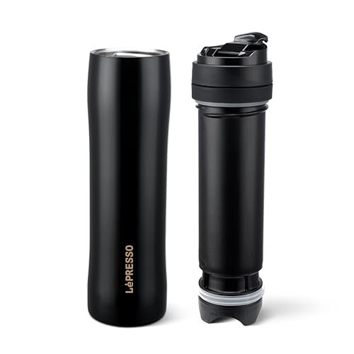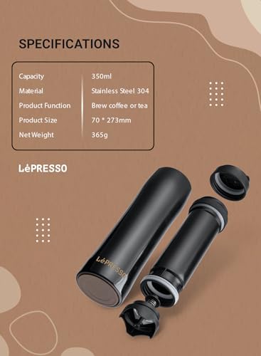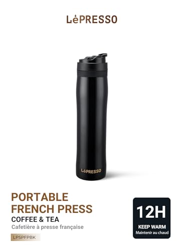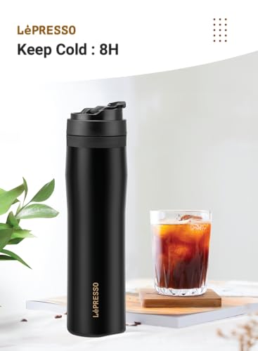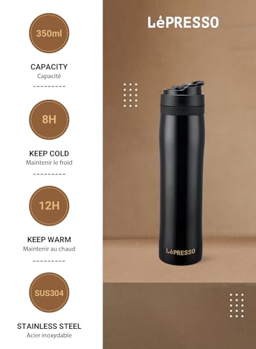 LePresso - مكبس فرنسي محمول لتحضير القهوة والشاي من ليبريسو، وظيفة المنتج: تحضير القهوة أو الشاي SUS304 فولاذ مقاوم للصدأ، مشروبات دافئة لمدة 12 ساعة ومشروبات باردة لمدة 8 ساعات، سعة 350 مل