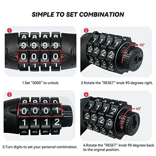 LEQISMART - قفل للسكوتر الكهربائي A8 للبالغين، قفل دراجة مع مجموعة من 4 أرقام قابلة لإعادة الضبط، طول 1.22 متر وقطر 1 سم من ليكسمارت