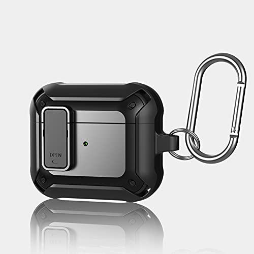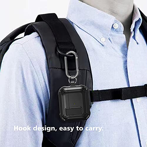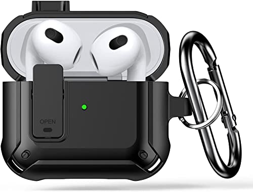 leQuiven - حافظة ليكيفين ايربودز 3 مصممة لايربودز 3، جراب حماية متين بالكامل مع حلقة تثبيت لسماعات الاذن، جراب سيليكون مضاد للصدمات مع سماعات اذن بلوتوث (اسود)