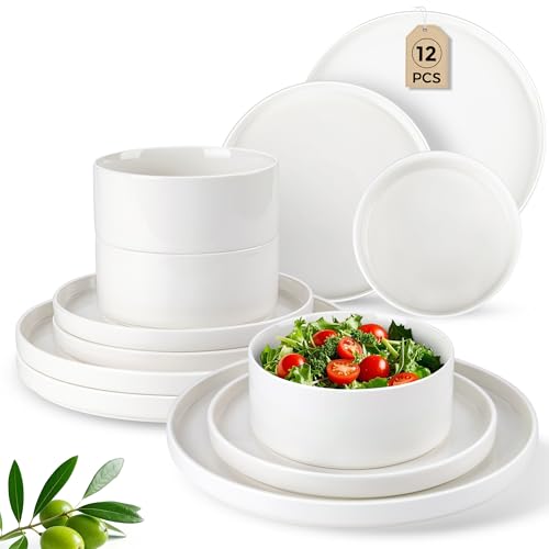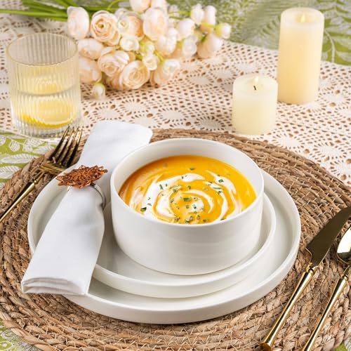 - 【ما ستحصل عليه】طقم عشاء مكون من 12 قطعة تتضمن 4 أطباق عشاء 25 سم، 4 أطباق سلطة بمقاس 20 سم، و4 أطباق عميقة لحبوب الإفطار بسعة 700 مل. طقم العشاء هذا مثالي للأسر الصغيرة أو الأزواج أو الأفراد. كل قطعة مصنوعة يدويًا، مما يضمن الجودة وحرفية الصنع الفريدة. -