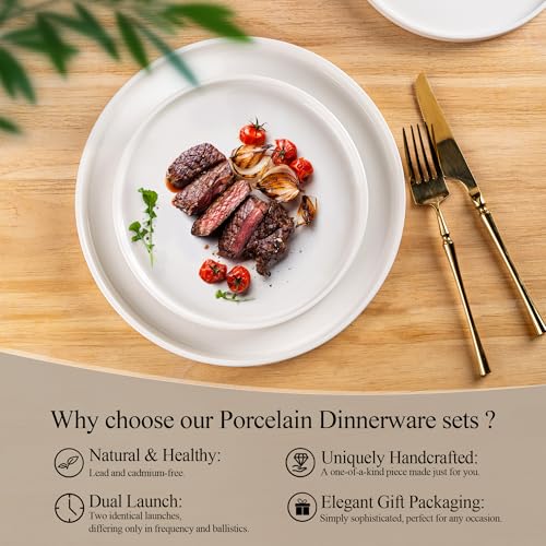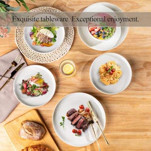 LERATIO - طقم عشاء خزفي من أطباق مسطحة و عميقة من السيراميك بحواف مرتفعة مقاومة عالية للتشقق والانكسار آمنة للاستخدام في غسالة الأطباق والميكروويف والفرن بطبقة طلاء زجاجية تفاعلية مميزة من ليراتيو،طقم مكون من