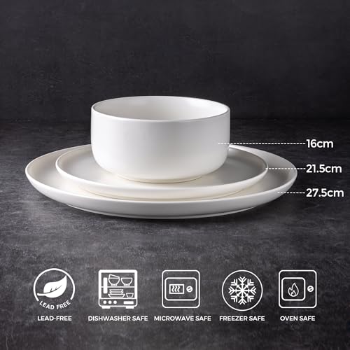 - محتويات العبوة: يتضمن طقم أدوات المائدة هذا المكون من 18 قطعة 6 أطباق عشاء مقاس 27.5 سم، و6 أطباق جانبية مقاس 21.5 سم، و6 قطع بولات الحبوب/الشوربة مقاس 16 سم، مما يجعله خدمة رائعة لـ 6 أشخاص. كوني مطمئنة إلى أن كل قطعة قد تم فحصها بدقة لضمان الوصول الآمن دون أي كسور