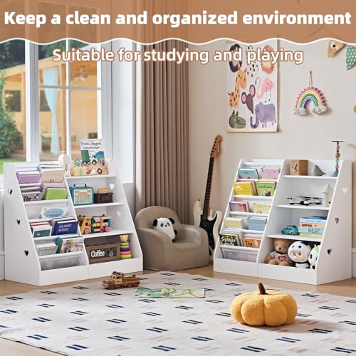 Lerliuo - رف كتب ومنظم ألعاب للأطفال مكون من 4 طبقات، دولاب كتب للأطفال من خمس طبقات، رف كتب خشبي للأطفال الصغار، خزانة عرض لغرفة اللعب وغرفة النوم والفصول الدراسية والحضانة والمدرسة من ليرليو (أبيض)