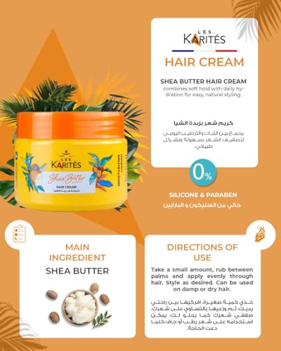Les Karites - لو كاريتيه كريم شعر مرطب (١٨٠ مل) - غني بزبدة الشيا وشمع الجوجوبا - يغذي وينعم - يترك على الشعر