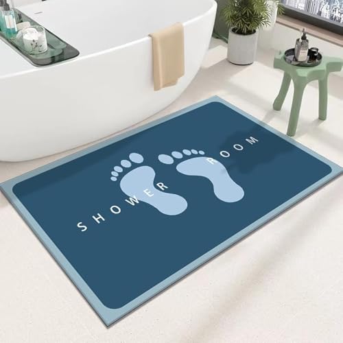 LESTER - دواسة حمام مضادة للانزلاق من ليستر بتصميم مستطيل الشكل لغرفة الاستحمام بلون أزرق داكن مقاس 50 × 80 سم، بلاستيك