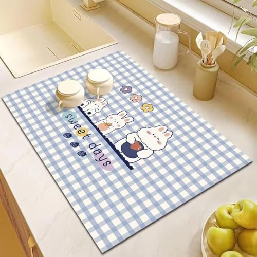 LESTER - سجادة تجفيف للمطبخ مستطيلة الشكل بتصميم أرنب من ليستر، مقاس 50 سم × 80 سم، لون أزرق/ أبيض