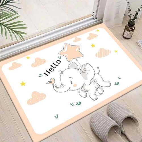 LESTER - دواسة باب ناعمة غير قابلة للانزلاق مستطيلة الشكل بتصميم فيل أبيض ووردي فاتح من ليستر، 50 × 80 سم، بلاستيك