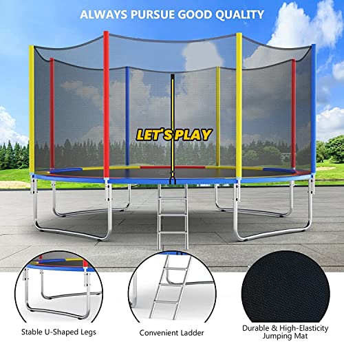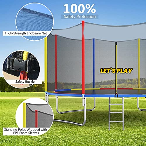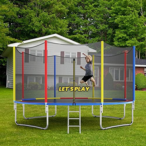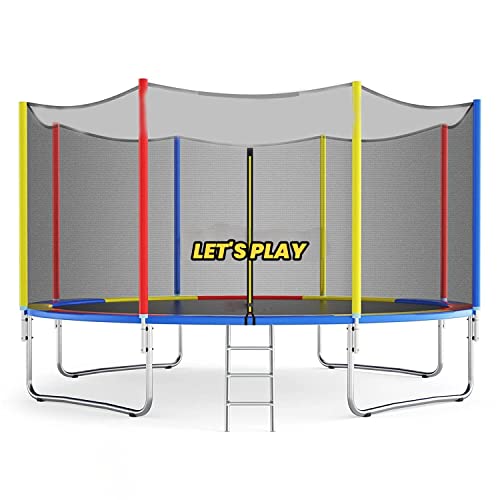 LET'S PLAY - ترامبولين موديل LP-995 بمقاسات 1.8 و2.4 و3.0 و3.7 و4.3 و4.9 متر للبالغين والأطفال من ليتس بلاي®، ترامبولين ارتدادي مزودة بشبكة أمان وسوست ووسادة حماية للاستخدام الداخلي والخارجي، متعدد الألوان