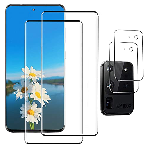 LETANG - [2+2] واقي شاشة من الزجاج المقوى لموبايل سامسونج جالاكسي S20 الترا 5G + عدسة الكاميرا [تغطية كاملة] [صلابة 9] [مضاد للخدش] [دعم بصمات الأصابع] HD شفاف وبدون فقاعات 6.9 انش