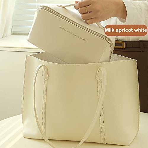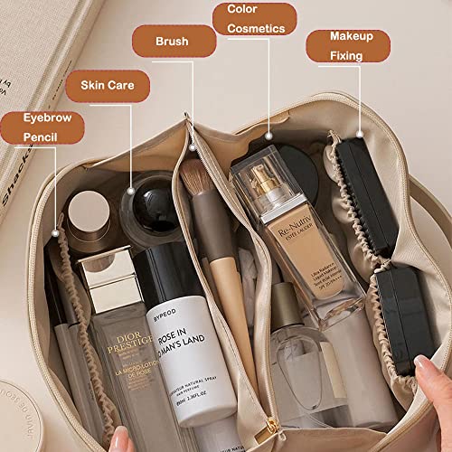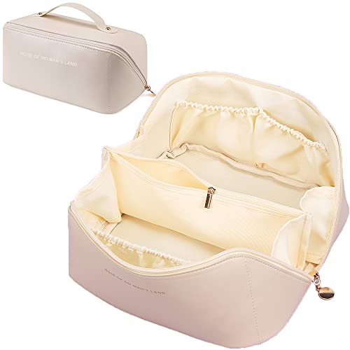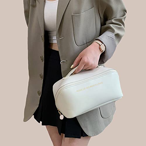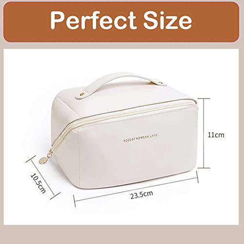 LETGO - شنطة مستحضرات تجميل للسفر بسعة كبيرة سفر محمولة من جلد البولي يوريثين مع مقبض ومقسم مكياج متعددة الوظائف مقاومة للماء للنساء والفتيات ابيض ايه ليت جو