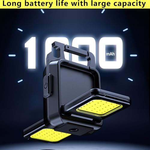 LETOUR - مصباح عمل بسلسلة مفاتيح سي او بي من لو تور، مصباح يدوي صغير مطوي 90 درجة مع 6 أوضاع 1000 لومن مقاوم للماء بدرجة IPX4 مع قاعدة مغناطيسية للمشي والتخييم