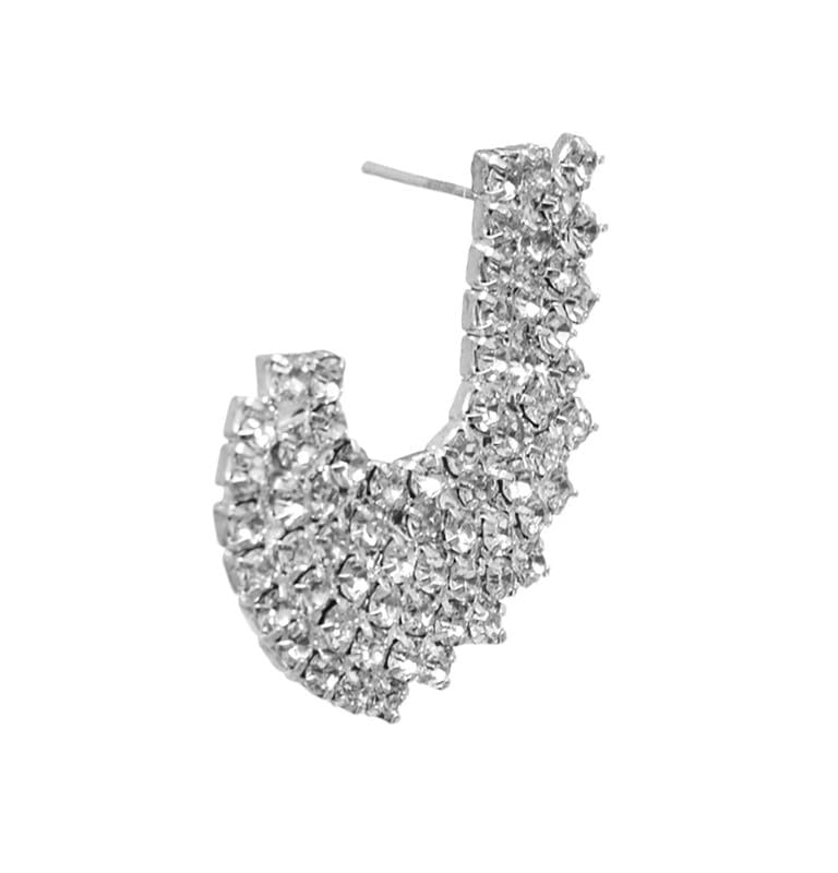 Generic - حلق ستانلس ستيل على شكل حرف J مرصع بالالماس الصناعي للنساء - ابيض