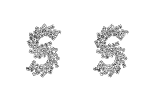 Generic - حلقان من فولاذ مقاوم للصدأ على شكل حرف S مرصعة بألماس صناعي للنساء، أبيض