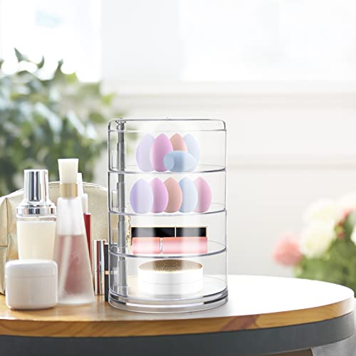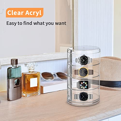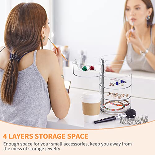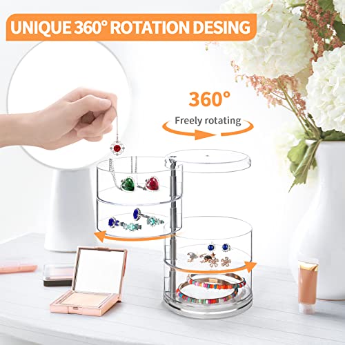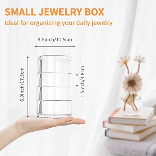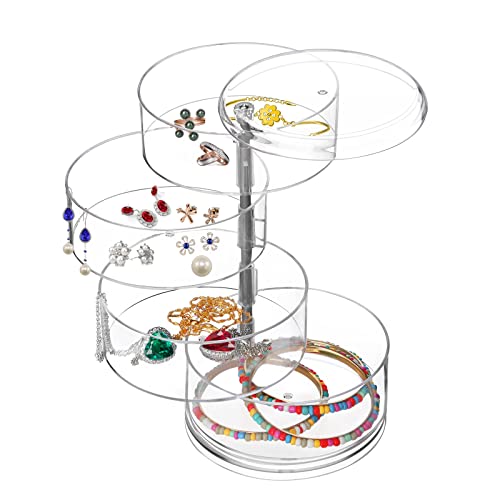 LETURE - منظم مجوهرات صغير من البلاستيك الشفاف من ليتر، صندوق تخزين مجوهرات قابل للدوران من 5 طبقات مع غطاء لأكسسوارات الشعر ومستلزمات التجميل والحلقان والقلائد والأساور (شفاف، 4 طبقات)