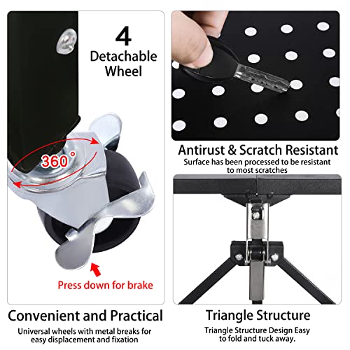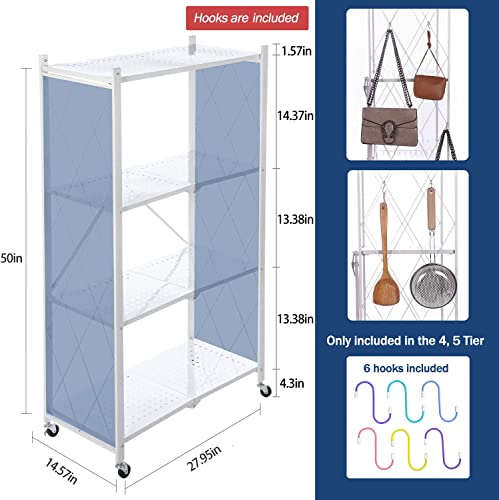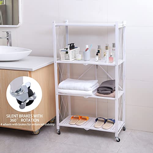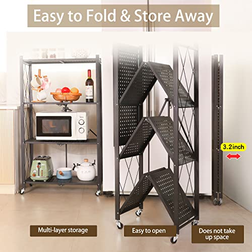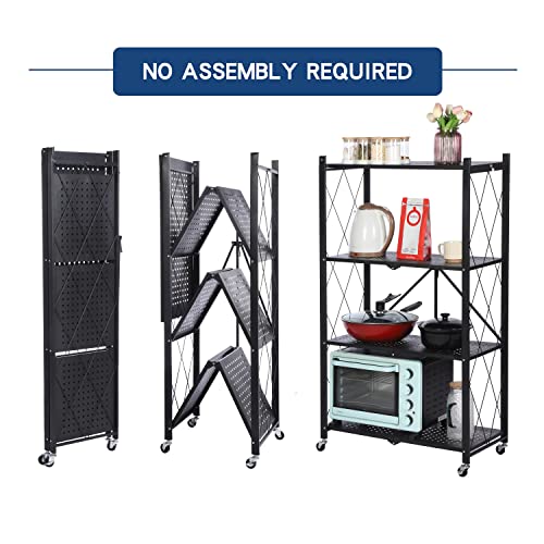 Letusto - وحدة رفوف متينة قابلة للطي مزودة بعجلات، إطار رفوف معدن لتنظيم الكتب والمؤن من ليتوستو، لا يحتاج إلى تجميع، أسود، 4 مستويات