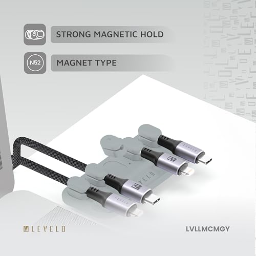 LEVELO - ليفيلو منظم كابلات مغناطيسي قابل للفصل من ليفيا، خالي من التشابك، 5 رؤوس مغناطيسية، خفيف الوزن، سهل التركيب، متوافق مع كيبل بقطر 4 ملم (رمادي)