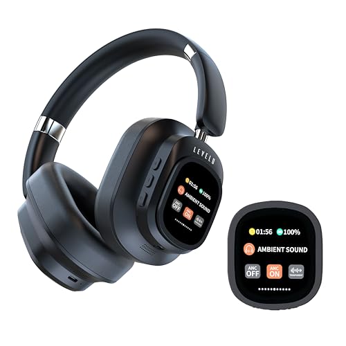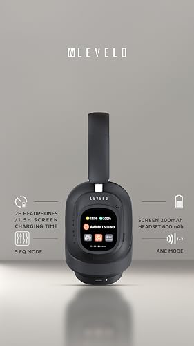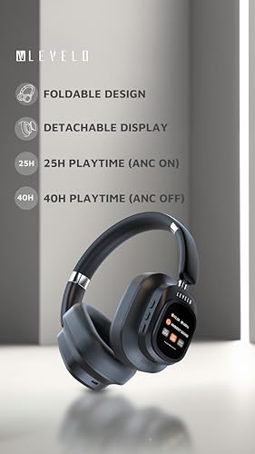 LEVELO - سماعات رأس هايبرد فايب ماستر ايه ان سي بتصميم قابل للطي بـ5 أوضاع لمعادل الصوت ووقت تشغيل 25 ساعة بخاصية إلغاء الضوضاء وإيقاف تشغيل 40 ساعة وشاشة قابلة للفصل 200mAh وبطارية بسعة600mAh من ليفيلو، أسود