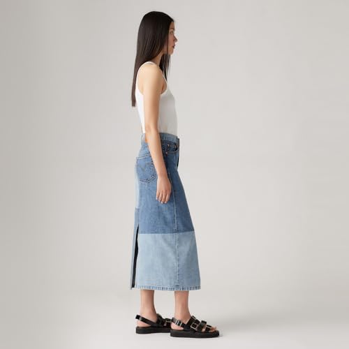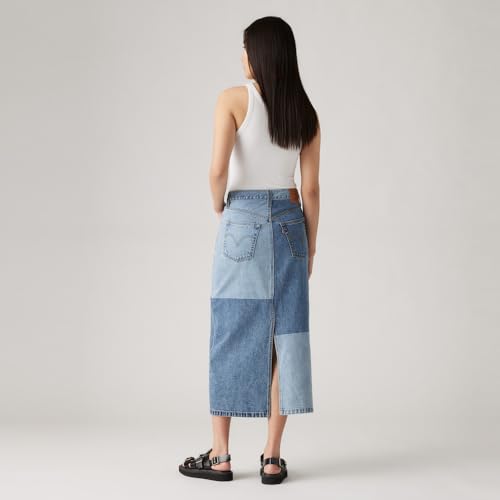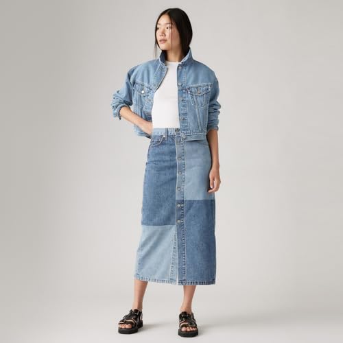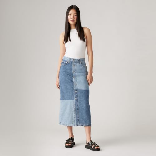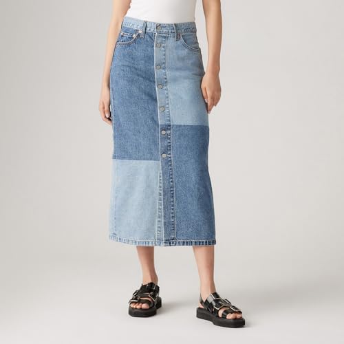 Levi's - جيبة ميدي متوسطة الطول بأزرار وتصميم مرقع للنساء من ليفايس