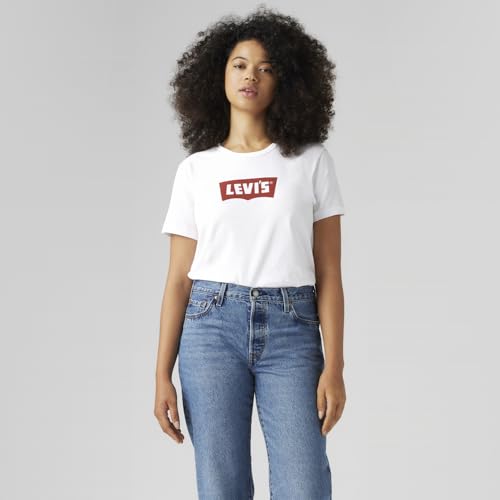 Levi's - تيشرت ايكونيك مزين بتصميم عبارة "Levi's" للنساء من ليفايس، مقاس M لون أبيض