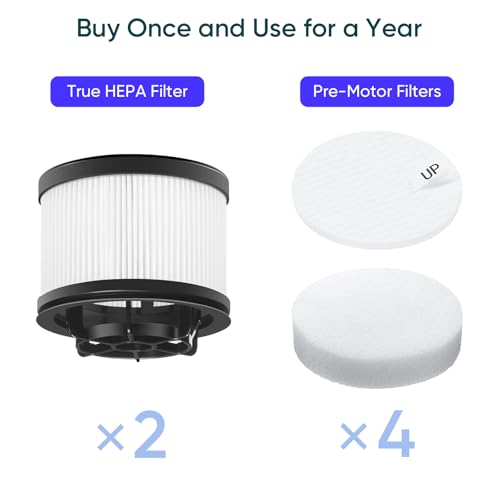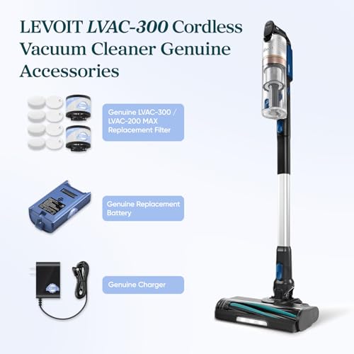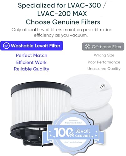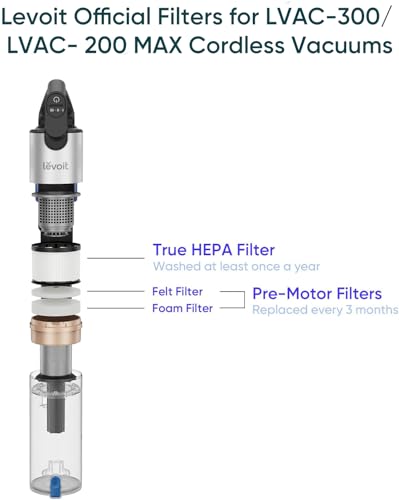 Levoit - فلتر بديل للمكنسة الكهربائية LVAC-300، 4 فلاتر للمحرك المسبق 2 فلتر هيبار من ليفويت، أبيض
