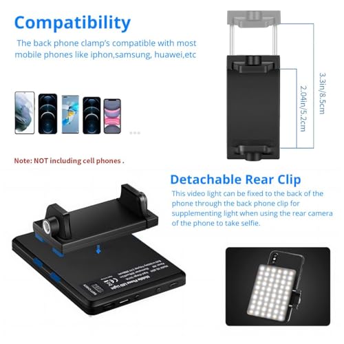 - طريقتان للتركيب】 مشبك دائري يربط المصباح بموبايلك الذكي والتابلت واللاب توب بسُمك يصل إلى 20 ملم ويحافظ على الكاميرا الأمامية مكشوفة. حامل الموبايل يناسب الموبايلات بعرض 52-85 ملم ويثبت الضوء على الجزء الخلفي من الهاتف لاستخدامه كإضاءة غامرة. فتحتان لولبيتان 6.35 ملم يثبتان المصباح مباشرة على أي حامل إضاءة.