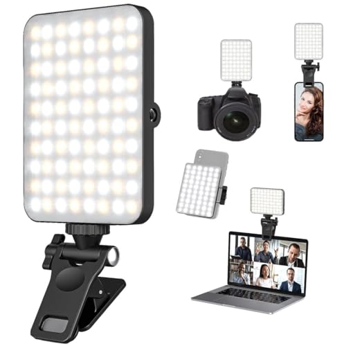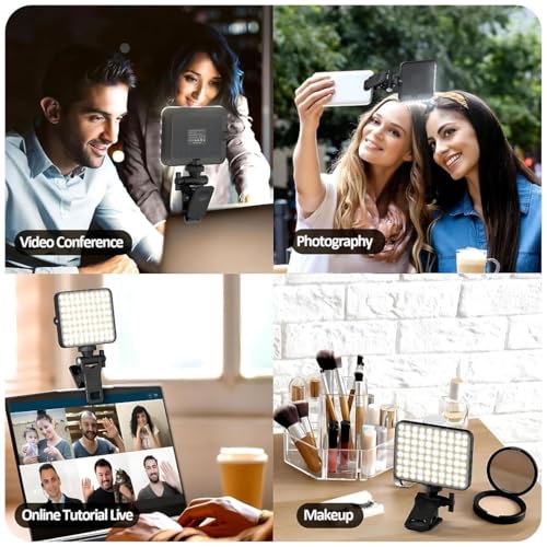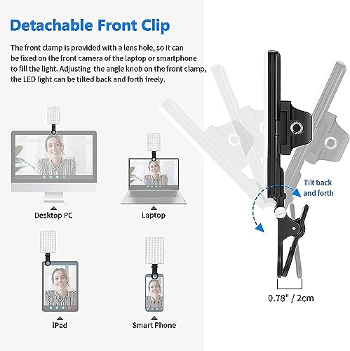 LEVOU - مصباح ليد لالتقاط الصور السيلفي مع مشبك أمامي وخلفي، 60 مصباح ليد قابل لإعادة الشحن CRI 95+، مع 3 أوضاع إضاءة، للموبايل والتابلت واللابتوب ومكالمات زووم وتيك توك من ليفو