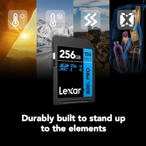 Lexar - بطاقة ذاكرة 800x برو اس دي اكس سي UHS-I عالية الأداء من ليكسار، 256GB، C10، U3 V30، فيديو 4K UHD، قراءة حتى 150 ميجابايت/ثانية، لكاميرات دي اس ال ار متوسطة المدى (LSD0800P256G-BNNNU)