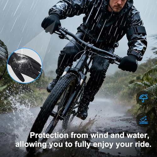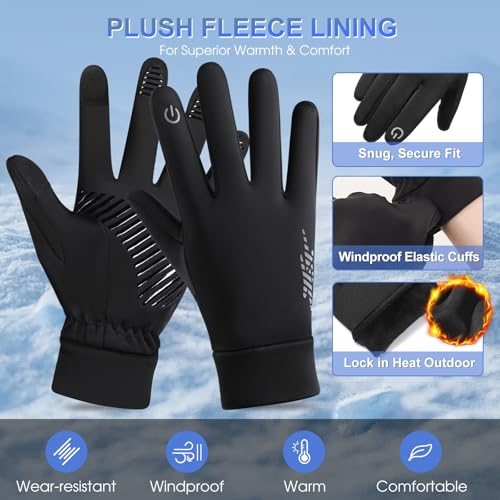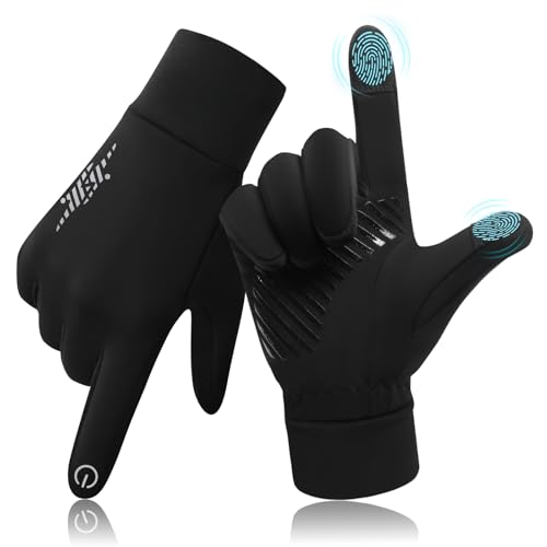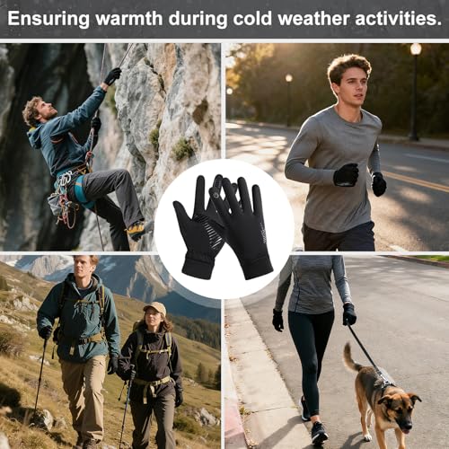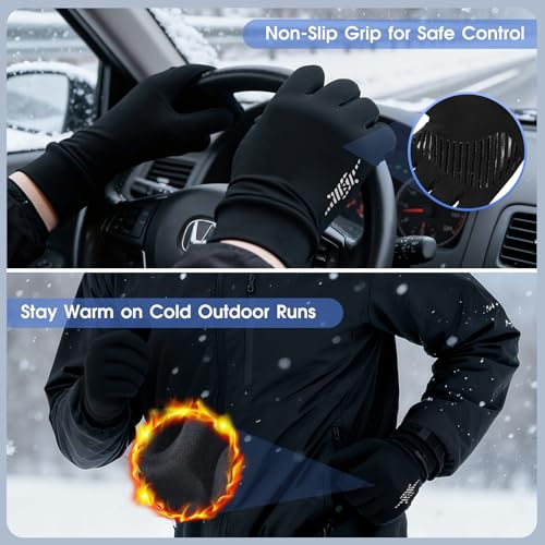 Happy Square - قفازات جري حرارية وشتوية للرجال مقاومة للرياح والماء مناسبة للقيادة والمشي لمسافات طويلة وركوب الدراجات وتعمل على شاشات اللمس جوانتي رياضي مضاد للانزلاق (لون أسود، مقاس كبير)