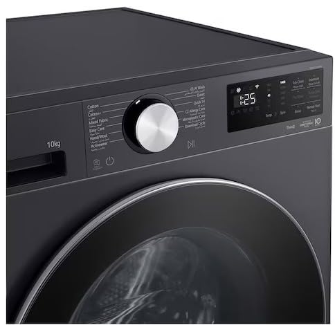LG - غسالة تحميل أمامي طراز F4X5RYG24 بسعة 10 كجم، محرك مباشر بالذكاء الاصطناعي، سمارت ثينكيو واي فاي، بخار، تقنية 6 حركات من ال جي، بلون أسود