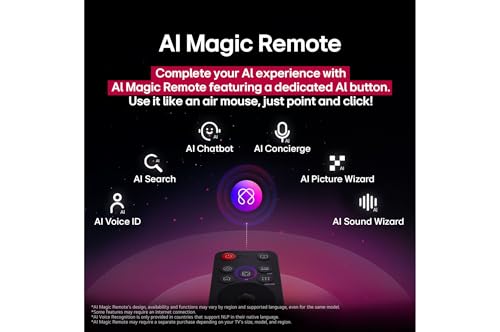 - يتيح نظام التشغيل ويب او اس مع ريموت ماجيك ايه اي إمكانية البحث بالذكاء الاصطناعي وروبوت الدردشة بالذكاء الاصطناعي والكونسيرج بالذكاء الاصطناعي لتوصيات مخصصة للمحتوى في حين يتم تحديث برنامج ويب او اس وتجديده كل عام لمدة 5 سنوات.