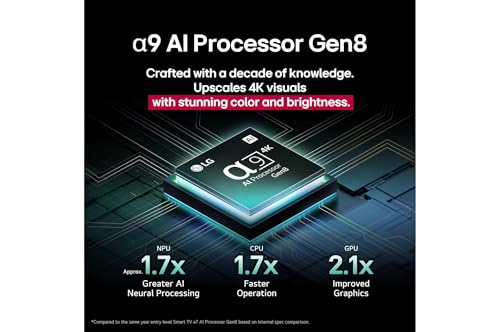 - معالج الذكاء الاصطناعي α9 الجيل الثامن مع تقنية الترقية الفائقة بالذكاء الصناعي إلى دقة 4K ومعالج الصورة والصوت المخصص.