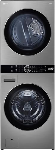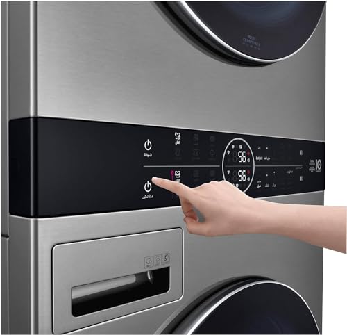LG - غسالة من إل جي واش تاور بتحميل أمامي سعة 16 كجم، لون ستانلس ستيل مع تقنية الذكاء الاصطناعي والغسيل السريع والعناية بالحساسية