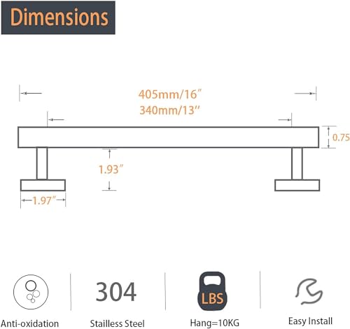 - [قضيب تعليق منشفة فردي شديد التحمل] - مصنوع من الستانلس ستيل 304 القوي والمتين بلمسة نهائية باللون الأسود غير اللامع وهو مقاوم للصدأ ومقاوم للتآكل، حتى في البيئات الرطبة، بالإضافة إلى أنه لا يتطلب الكثير من الصيانة.