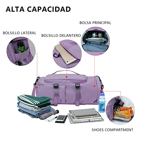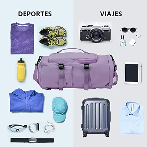 LHChan - شنطة ظهر رياضية للرجال والنساء مع جيب للأحذية، لصالة الألعاب الرياضية واللياقة البدنية منال اتش تشان، كبيرة مقاومة للماء للسباحة واليوغا وصالة أرجواني، 36 لتر