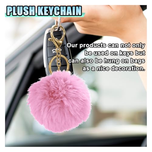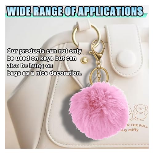 LHDOS - سلسلة مفاتيح سيارة قطيفة منفوشة، تعليقة سيارة لطيفة للنساء والبنات، حلقة مفاتيح لتزيين السيارة للمحفظة وشنطة اليد وشنطة الظهر من ال اتش دي او اس
