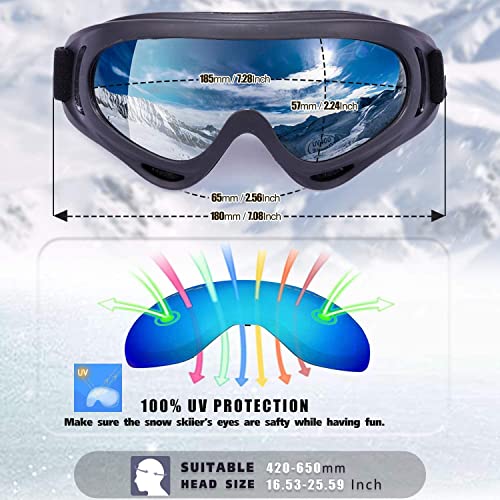 LHSM - نظارات تزلج على الجليد ال اتش اس ام، مقاومة للرياح والاشعة فوق البنفسجية، خوذة مضادة للضباب متوافقة مع نظارات الثلج والموتوسيكلات، للاطفال والشباب والرجال والنساء