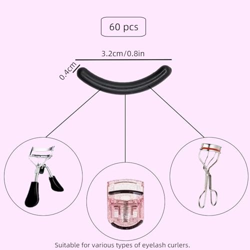 LIANRISES - وسادات بديلة لأداة تجعيد الرموش القابلة لإعادة التعبئة من سيليكون المطاط بتوافق شامل لأداو تجعيد الرموش من ليانريز، لون أسود، عبوة من 60 قطعة