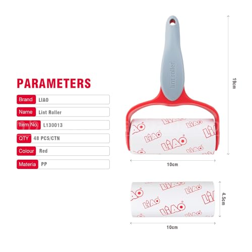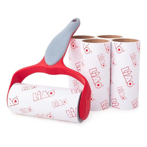 LIAO - بكرة إزالة الوبر L130013، 25 ورقة × 5 عبوات إعادة تعبئة من لياو، مقاس 19 سم × 11.5 سم × 4.8 سم، رمادي/أحمر