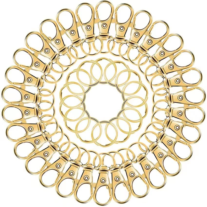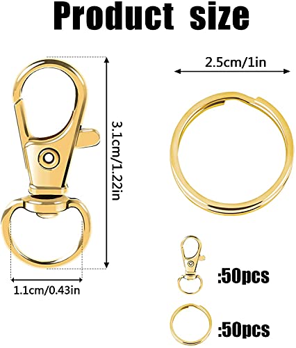 Libara - خطاف ميدالية مفاتيح دوار معدني بعليقة مناسب للحرف اليدوية والمجوهرات - 100 قطعة (50 خطاف + 50 ميدالية مفاتيح)